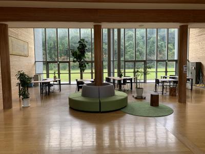 いよいよ当日を迎えてしまいました。昨日から最終準備に取り掛かり、カフェをイメージした「学びの空間」が出来上がりました。と言っても、まだすべての備品がそろっていませんので、未完成ではありますが。