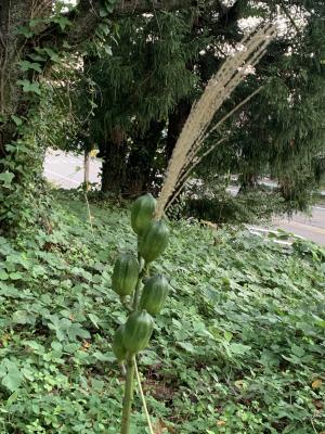 誰かのいたずらですね。ウバユリにススキの穂。