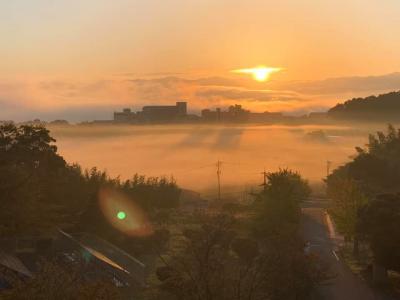 おはようございます。今朝は冷え込みました。車載気温計は今季初めての0℃。地面は一面白く霜が降りていました。