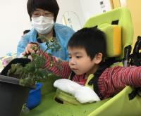 葉に触れ、香りを嗅いだり、土の感触を感じながら植木鉢に土入れをしたりして、プチトマトの苗を植えました。太陽の日差しをたくさん浴びて、真っ赤な実をたくさんつけますように!夏休みの登校日には実をつけた姿を見られるかな?収穫が今から楽しみです。