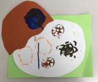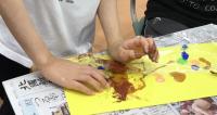 また、絵の具を混ぜ合わせて自分の色をつくり、好きな野菜でスタンプを押して、