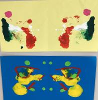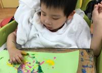 好きな色の絵の具と画用紙を選んで絵の具遊びをしました。画用紙に出した絵の具をじっと見て、指先や手の平で触れ、絵の具の感触を感じて笑顔を見せる児童や模様が変化する様子を楽しむ児童、画用紙を半分に折り、手の平でぎゅっと押したり叩いたりして模様を描いた生徒など、それぞれの描き方で模様作りを楽しみました。一つ一つみんな違う個性豊かな素敵な作品ができました。