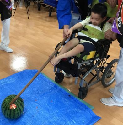 恒例のスイカ割りの他、ボールすくいや千本釣りのゲームを病棟の方たちと一緒に楽しみました。