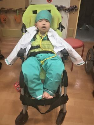 10月31日(火)には、アカシア病棟の行事「ハロウィンパーティー」に参加し、病棟スタッフや教員の出し物を楽しみ、みんなでダンスを踊りました。