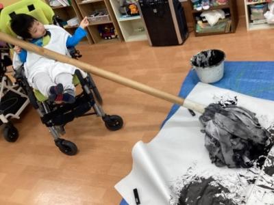 大きくて持つのも握るのも大変!筆を押したり引いたり試行錯誤しながら一生懸命に書けましたね。