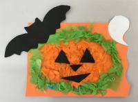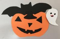 ハロウィーンに向けて、教室でかぼちゃやこうもりを制作をしたり、好きな衣装で仮装を体験したり、「もったいないばあさん」の曲に合わせてダンスをしたりしました。