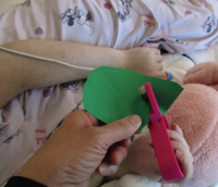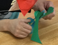 好きな色の花紙やトレッシングペーパー、好きな模様のデザインペーパーを選んで、握ったり、ちぎったりするなどして、感触や音を感じながら、まどかざりを作りました。