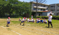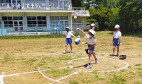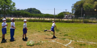 6月1日(火)青空の下、体力テストが行われました。グラウンドで行ったのは、50m走とソフトボール投げです。