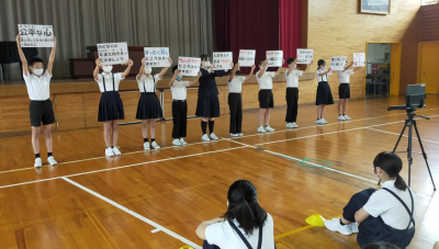 6月の生活目標は、「公平な心を持とう」です。放送委員会が、「一人一人ちがう良さがあり、誰に対しても優しく接しよう。」と呼びかけました。
