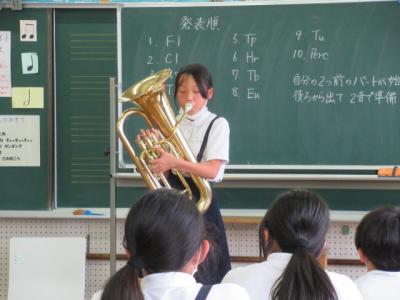 今日の放課後、週末に行われるソロコン予選会に出場する人を決める校内予選会がありました。音楽室にブラスのメンバーや先生が大勢いる中で一人ずつ前に立って演奏します。演奏する人の緊張感が見ているこちらにまで伝わってきました。表情はみんな真剣そのものです。練習通りにうまく演奏できた人もいれば、ふだんの力を出せず悔しい思いをした人もいたことでしょう。しかし、ここに至るまでのメンバー全員の頑張りは何物にも代えがたい経験になったはずです。おそらくこの日のことは何年も何十年も心に残る時間になったに違いありません。メンバー全員に心からの拍手を送ります。