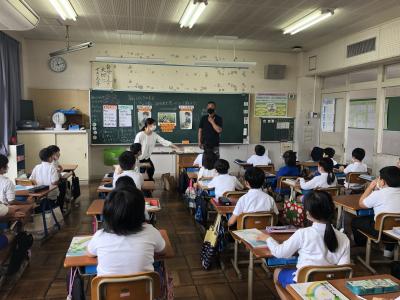 2年生の道徳の授業に、水田丸で専業農家を営んでおられる下出さんがゲストティーチャーとして来てくださいました。道徳のお話は次のようなものです。
