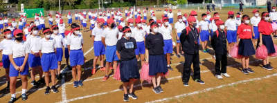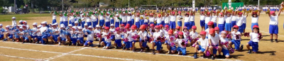 雲一つ無い、爽やかな秋晴れの中で、錦城小学校の大運動会が行われました。今年は赤白に分かれ、得点を競いながらの運動会でした。これまで、2年連続で赤団が勝っていたそうですが、今日は白団の優勝となりました。