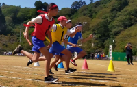 低学年の徒走では、ゴールに向かって1,2年生が一生懸命に走っていました。中学年、高学年の全員リレーは、抜きつ抜かれつの大接戦で、大いに盛り上がりました。みんながひと一つになって応援し、とても見応えのあるリレーでした。