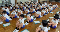 本来なら中央図書館に出向いて校外学習をするところ、今は司書さんが学校にやってきて出前授業をしてくれているそうです。お忙しい中ありがとうございました。