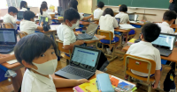 5年生の授業の様子を写すことができなかったのですが、他の時間に校内を回ると、4年生が社会と総合的な学習の時間にパソコンを使っていたので、その様子を撮らせてもらいました。