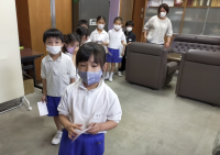 5月21日(金)1年生が自分で作った名刺を持って、校長室にやってきてくれました。自分の名前の紹介と一緒に、好きな動物や好きな食べ物など教えてくれました。
