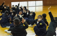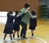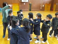 4月13日(火)朝体育館に行ってみると、1年生がじゃんけん列車をしていました。先生の合図でじゃんけんをして、勝った人の後ろにどんどんくっついていくのですが、列が長くなると、誰が先頭かだんだん分からなくなってきました。