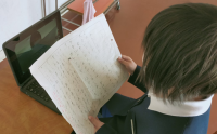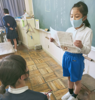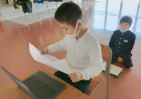 クロムブックの録画機能を使い、自分が話している映像を後で確認して、話すスピードや声の大きさなどをチェックしていました。どの子も、楽しそうに、そして慣れた手つきで操作しており、子ども達の順応性に感心させられました。