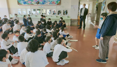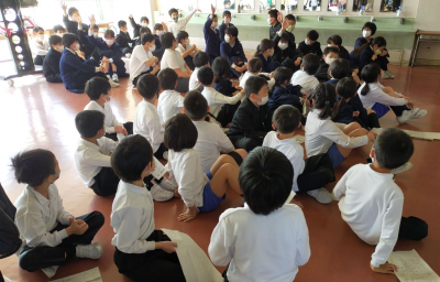 3月9日(火)校内を回っていたら、2階低学年棟のホールに、2年生と6年生が集まっていました。何をしているのかな?と立ち止まって聞いていたら、どうやら2年生が国語の授業で調べたことを、6年生にクイズ形式で発表していました。「あなのやくわりをかんがえよう」という勉強をいかして、身の回りにある「穴」クイズを考えたようでした。