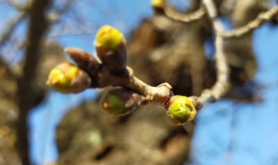 朝晩の冷え込みが厳しい反面、日中はよく晴れて暖かい日が続きそうです。この陽気に誘われて、先日まで堅かった桜のつぼみが、少し膨らみ始め緑色に変化してきました。