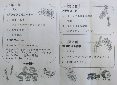 特に、第3部の全員による合奏では、キセキやパイレーツ・オブ・カリビアンメドレー、J-BEST2019など、迫力と聴き応えのある素晴らしい演奏でした。