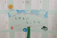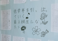 先日「6年生を送る会」があり、掃除の班長や委員会活動など、6年生から5年生へ引き継がれました。今、校内には5年生の一人一人が書いた「6年生になったときの決意」の作文が掲示されています。その言葉を読んでいると、6年生への感謝と、自分たちがしっかりと錦城小学校を支えていきたいとの思いが伝わってきます。