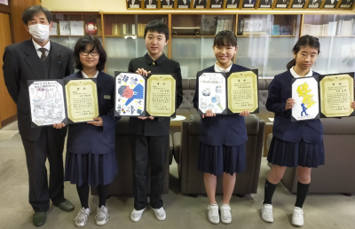 2月10日(水)税に関する「絵はがきコンクール」の表彰式が、校長室にて行われました。錦城小学校からは4名の受賞者があったということで、小松法人会より表彰状と副賞が贈られました。表彰状と共に、各自が書いた作品も付けられており、どの作品も個性的で素敵でした。おめでとうございます。