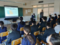 「薬物乱用防止教室」には、大聖寺警察署から警察官の方に来ていただき、「酒」「たばこ」や「違法薬物」などについて、これから気をつけておかなければいけない話が聞けました。「実際にたばこを吸わなくても、煙から出る有害物質が200種類もある。」というお話を聞いて、少しぞっとしました。