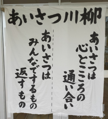 学校の高学年と低学年玄関には、大きな幕が掛かっています。先日、企画委員会が作成した、「標語」と「川柳」が書かれています。