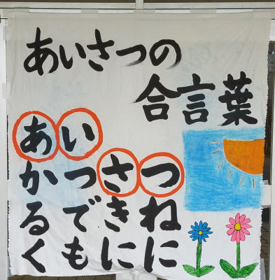 先日の全校朝会でも紹介されました。学校全体で、気持ちの良い挨拶をしていこうという、子ども達からの提案です。朝の挨拶も、少しずつ元気になってきたような気がします。