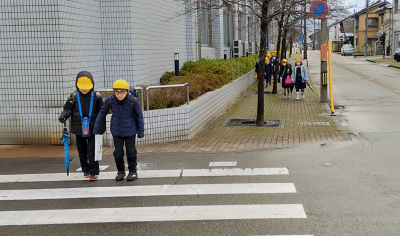 今日は朝から気温が低く、車や路面の一部が凍っていました。いつものように、朝の見守りをしていたところ、1年生の子が、「ころんだ!」と言って、少しすりむいた膝を見せてくれました。そうしている時に、少し離れた横断歩道でも、転んでいる人がいました。