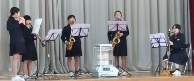 12月21日(月)お昼休みに、アンサンブルコンテスト出場者による、「ミニコンサート」が講堂で開催されました。