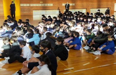 講堂にはたくさんの子ども達が聴きに来てくれて、さながら小さなコンサートホールのようでした。12月27日(日)には、加賀地区の代表として、素晴らしい演奏をしてきてくださいね。