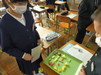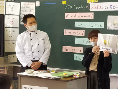 今日は、金沢大学の先生や、加賀市以外の先生を迎え、英語の研究授業がありました。福永先生が、「パティシエ」になり、フルーツパフェを作るといった、楽しい授業が行われました。子ども達はお店屋さんとお客さんに別れ、上手にやりとりが出来ていました。「とても素敵な授業でした。」「子ども達のあいさつに感動しました。」と言っていただき、とてもうれしい気持ちになりました。ほめられてうれしくなるのは、子どもだけではないのですね。
