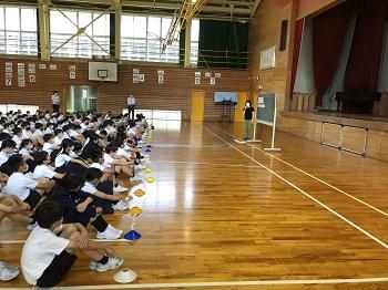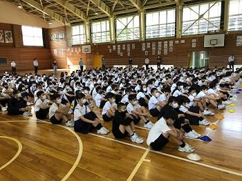 今日は8時20分から全校朝会がありました。定刻前には全校児童が静かに講堂に集まっていました。