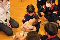 5,6年生の赤ちゃんふれあい体験が11月14日の午後に行われました。助産師さんのお話を聞き、赤ちゃんとのふれあいをさせていただきました。来校した赤ちゃんは、とてもかわいい姿を見せてくれました。その様子を見ている児童の顔は、にこにこ笑顔、本当に優しくて素敵な表情が出ていました。
