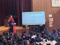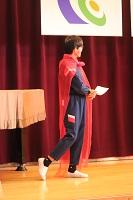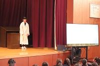 元気集会の内容は、「寒い冬になっていくと風邪などの菌が空気中に増えてしまうので、その菌に対抗できるように」と、健康委員の皆さんがわかりやすく劇にしてくれました。
