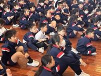 昨日、健康委員会から「元気集会を観にきてください」との呼びかけがあったことで、全校児童が講堂に集まりました。