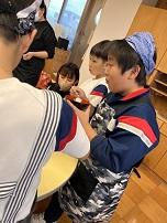 昨日27日は5年生の学年行事でした。親子で白玉団子作りをしました。この白玉の材料は、5年生自らが田植えや稲刈りをしたお米を使っています。新米で柔らかく、こねると団子になりました。きなこやフルーツ、あんこなどをトッピングしておいしい白玉団子になりました。