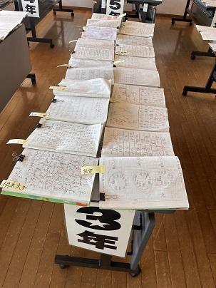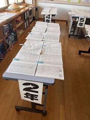 全校児童のノートを1,2年生教室前のスペースで展示しました。友達のノート、他学年のノートを見て、驚く姿もありました。友達のノートの良いところを見つけ、自分にも取り入れるといいですね。