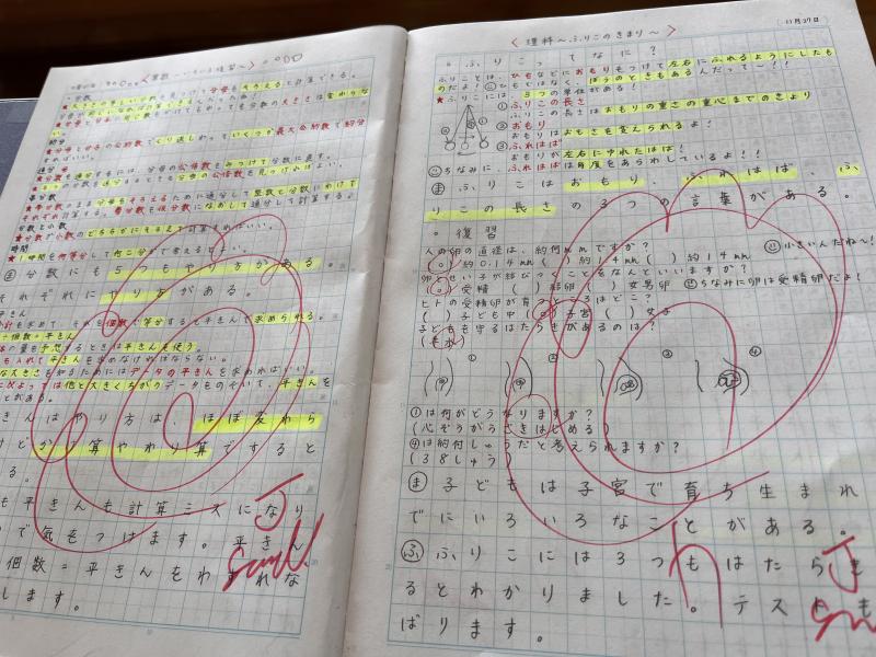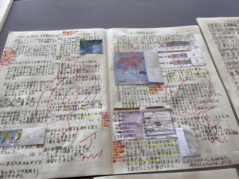 中学年や高学年の児童のノートは、細かくびっしりと内容がまとめられています。大切なところには色を付けたり、わかりやすく絵で示したりと、よく学んだあとが見えます。