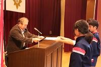 11月1日に行われた金明っ子マラソン大会。その時のタイムを記録し、同窓会の方が集計し、駅伝の結果を出してもらいました。駅伝の結果を昨日12月4日の長休みに表彰披露しました。