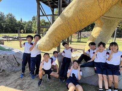 次は、福井県立恐竜博物館でした。大きな恐竜の前で驚いたり写真を撮ったりしました。そして、かつやま恐竜の森へ。お弁当を食べて、友達と遊んで、楽しい時間を過ごしました。良い天候のもと、たくさん経験ができてよかったです。保護者のみなさんのご支援のおかげです。