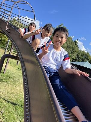 少し暑さもありましたが、とても良い天候の中、1,2年生が一緒に校外学習に出かけました。春はバスで移動でしたが、今回は徒歩で、加賀市中央公園へ。いつも歩くとしては長い距離、往復約9キロメートルはありました。校外学習中は、安全に移動して、友達とレクレーションやお弁当を仲良く楽しんでいました。学校に戻ってきた1,2年生の顔は楽しい満足した顔がいっぱいでした。