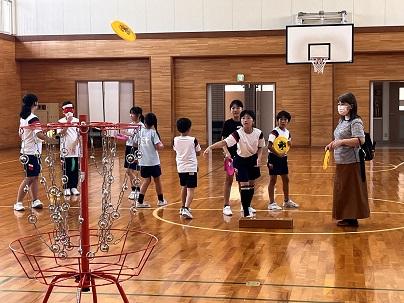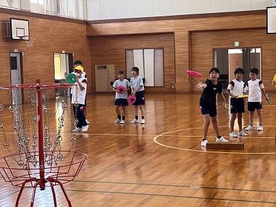 6限目は体育館に行き、パラスポーツの体験でした。4年生はなかなかフリスビーがかごに入らず、何度もチャレンジしていました。