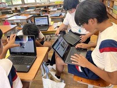 6年生の総合的な学習の時間では、「自分たちの思いや願いを、STEAMの力で実現できないか?」という課題で活動しています。子どもたちは1学期から加賀市や金明地区をよりよくするためにはどうしたらいいのか、考えています。2学期の初めの今日は、1学期に考えていたことをグループで思い出し、少しずつ形にしていこうと動き始めました。コンピュータクラブハウスや市教育委員会の方が来校して、6年生にアドバイスしてくれました。様々なツールや表現のしかたなどを考えて、課題を解決しようとしています。