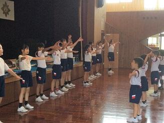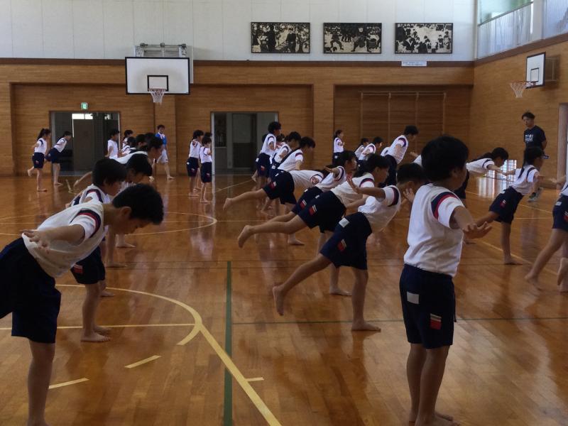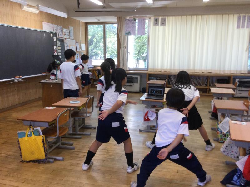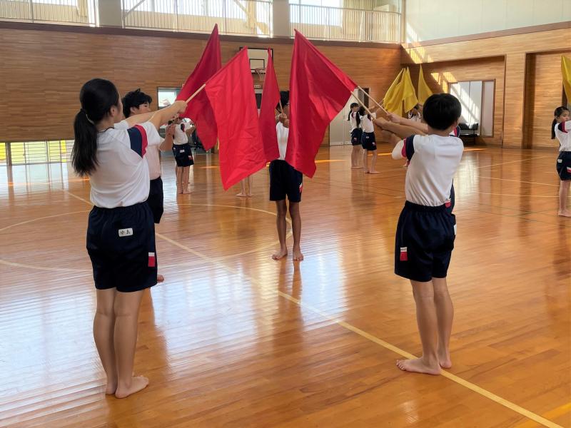 運動会に向けて、高学年(4~6年)が表現の練習に熱が入ってきています。体全体を使い、一つ一つの演技に取り組んでいます。
