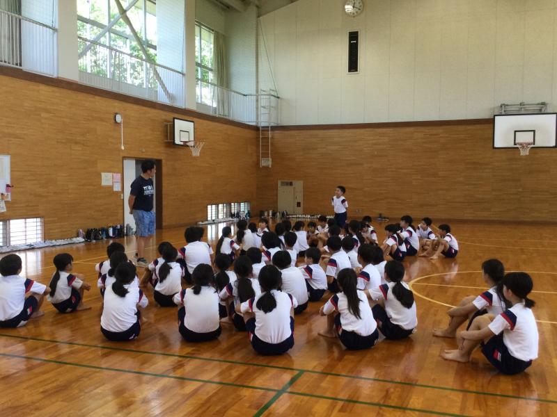 最後に、4年生~6年生全員で今日の練習の振り返りをします。頑張ったこと、そしてうまくできなかったこと、次に向けて頑張ることなど発表します。その言葉をみんながあたたかい拍手で受けとめます。