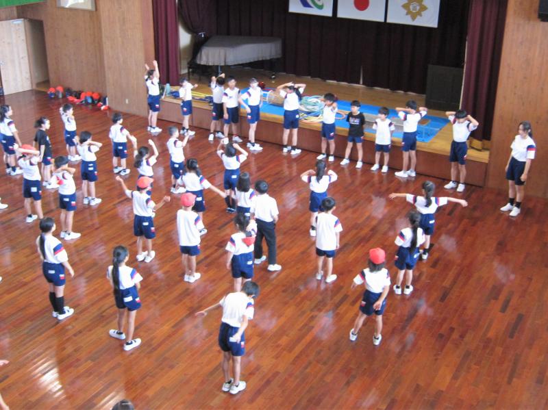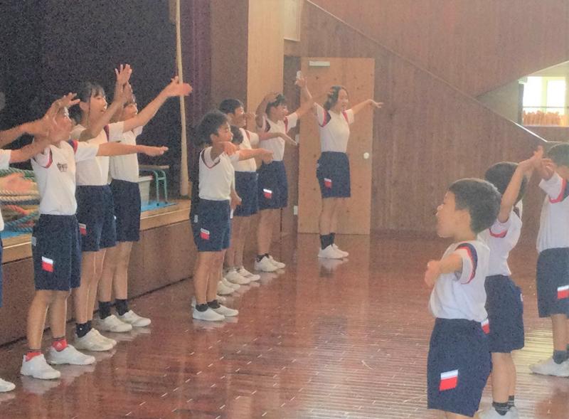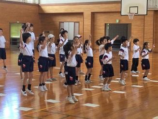 1年から3年のリズムの練習を体育の時間におこっています。3年生の動きをお手本に、1,2年生もだんだん上手になっていますね。長休みにも教室などで集まって練習する姿も見られます。みんなのやる気が素晴らしい!