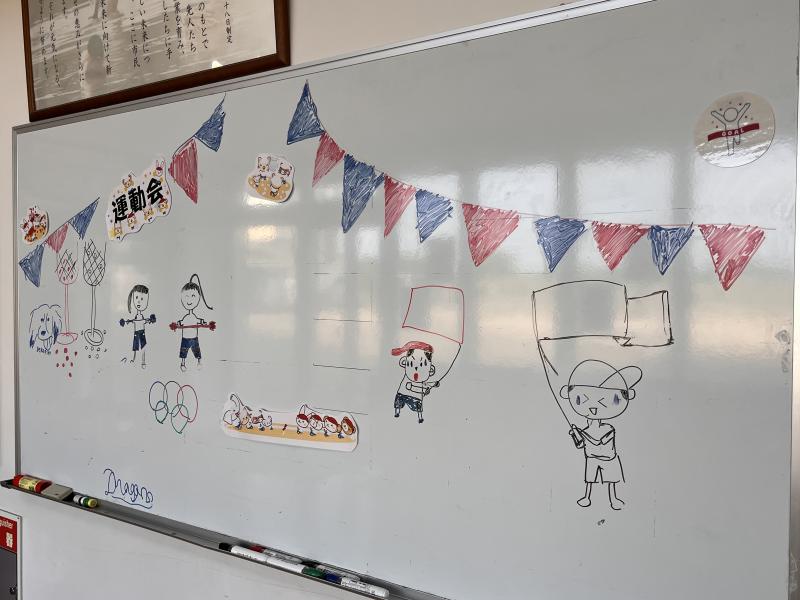 職員室前のホワイトボード。児童の運動会への思いが伝わります。